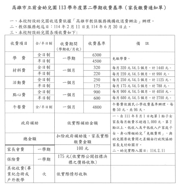 高雄市立前金幼兒園 地址:高雄市前金區大同二路 76 號總機:07-2211708、2516260